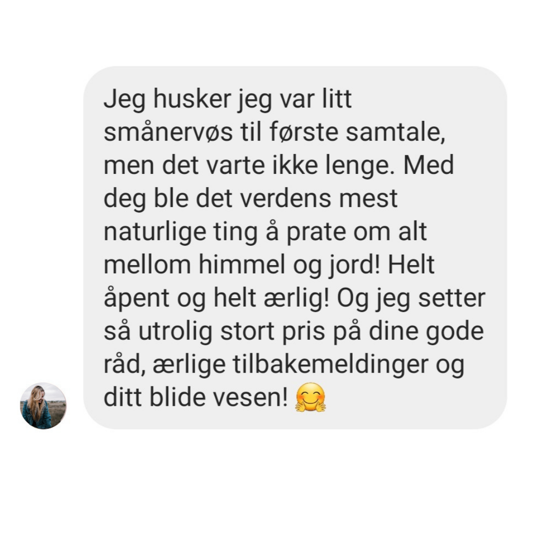 Book en gratis samtale, slik at du kan føle deg trygg på at jeg kan hjelpe deg med det du står i.